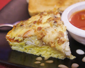Wake up to the smell of Savory Ham and Swiss Frittata. This slow cooker casserole is very simple to prepare and only takes two hours to fully cook. The classic combination of ham and swiss works perfectly as a breakfast casserole. Plus, the tiny crunchy bacon bits add an extra smokiness as well as texture. You'll be sure to reach for a second helping of this delicious breakfast casserole.