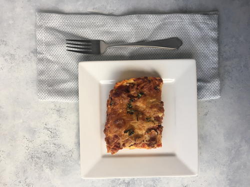 I could not get enough of this dish! The cheesy layer on top really put this lasagna over-the-top, and even a small piece was filling because of the meat. Perhaps next time I will add spinach too.